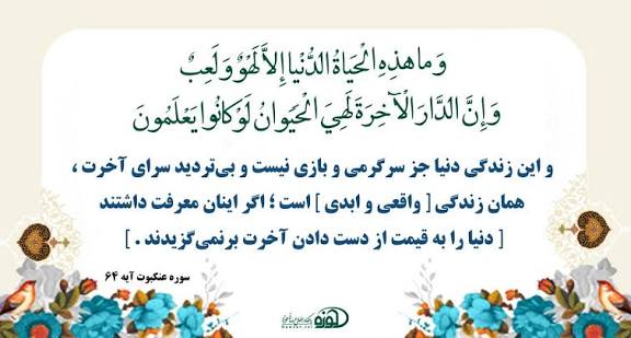 «وَإِنَّ الدَّارَ الْآخِرَةَ لَهِيَ الْحَيَوَانُ لَوْ كَانُوا يَعْلَمُونَ» (عنکبوت/۶۴)