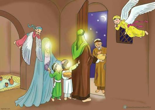 حضرت علی (ع)، فاطمه زهرا (س) و فضه خدمتکارشان نذر کردند که اگر فرزندانشان شفا یابند، سه روز روزه بگیرند.